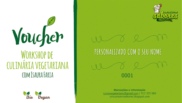 Pode oferecer um Voucher personalizado que vale um WORKSHOP DE CULINÁRIA VEGETARIANA em data e tema à escolha e com validade ilimitada.
