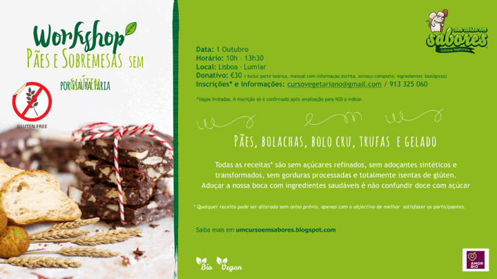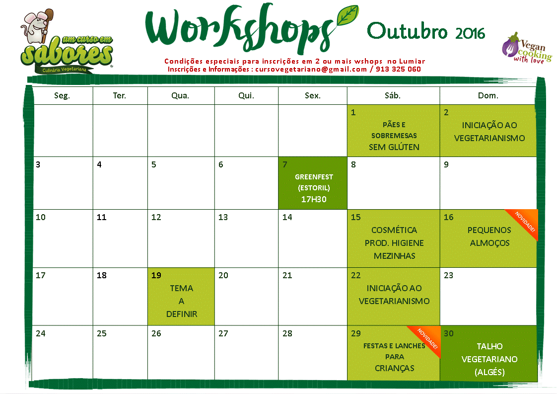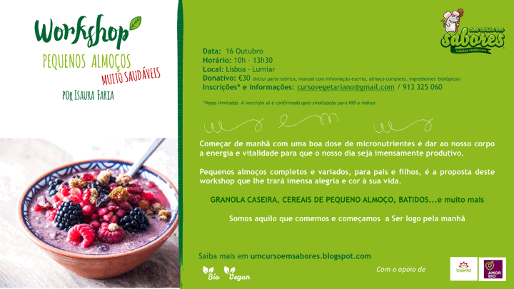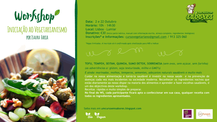 Inscrições e Informações: cursovegetariano@gmail.com / 913 325 060